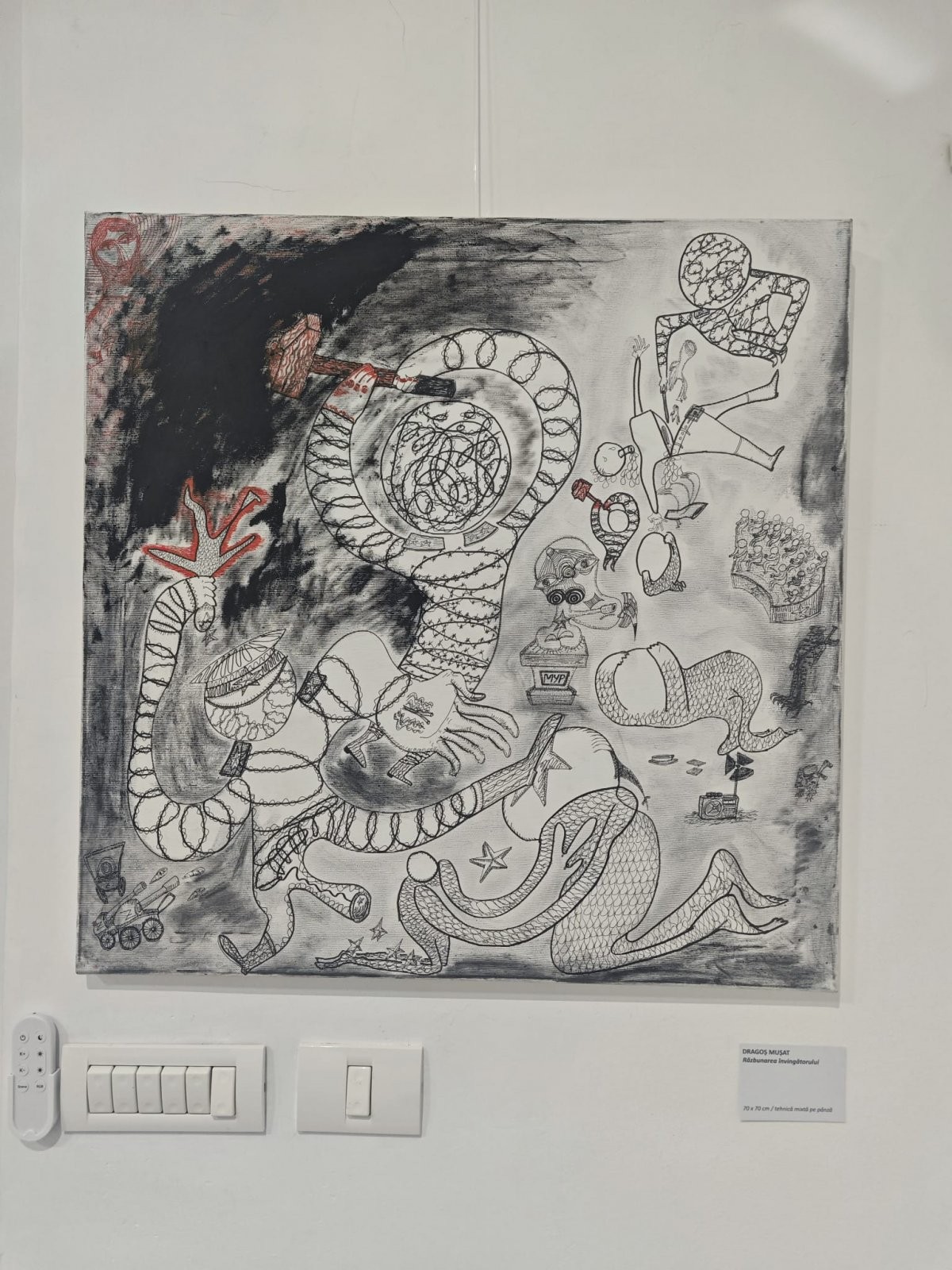 Cei 19 artiști prezenți în expoziție — Ana Luchian, Andrei Vlădeanu, Aurel Bulacu, Bogdan Andronic, Bogdan Turcea, Dragoș Bojin, Dragoș Mușat, Elena Lupașcu, Eugen Raportoru, George Bădițescu, Ionuț Cristea, Laurențiu Midvichi, Marina Aristotel, Mihai Glodeanu, Răzvan Stanciu, Roberto Apati, Sebastian Prioteasa, Sofia Ovejan și Valeriu Lazăr — expun fiecare cel puțin o lucrare, unele dintre acestea fiind prezentate publicului în premieră.