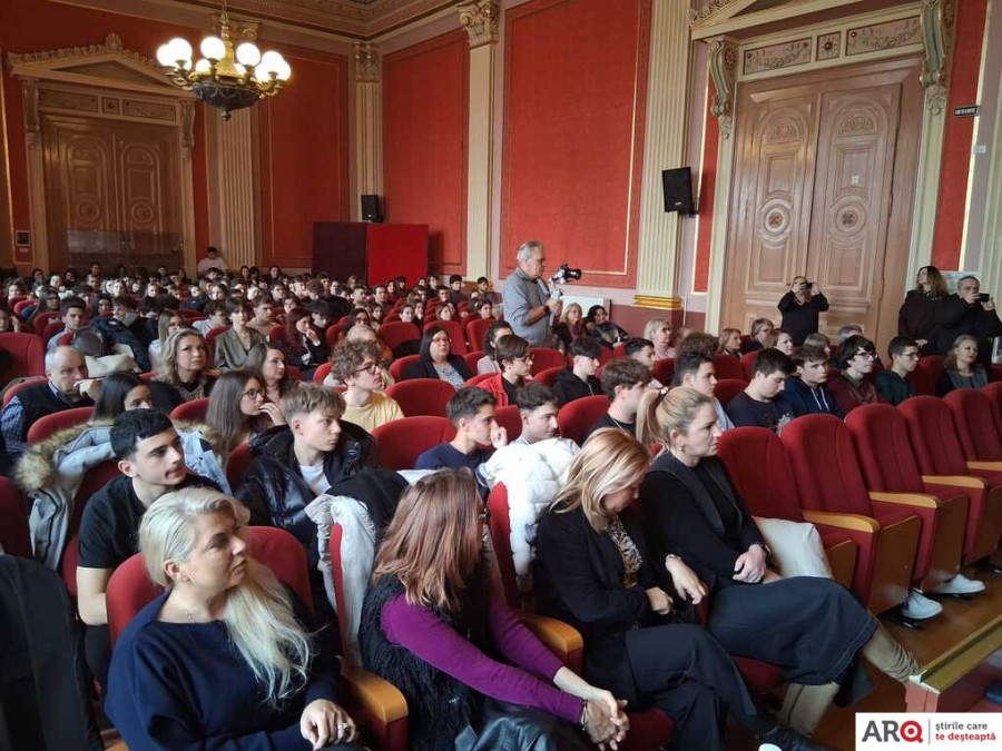 Sala festivă a fost astăzi plină, elevii colegiului venind să-și aplaude colegii care au obținut rezultate notabile la olimpiadele și concursurile școlare. Au ținut să fie alături de ei și de conducerea școlii, Iustin Cionca, președintele Consiliului Județean Arad, prefectul Mihai Pașca, conf. univ. dr. Teodor Cilan, rectorul Universității Aurel Vlaicu, dar și membrele Asociației SUSȚINEM EXCELENȚA.