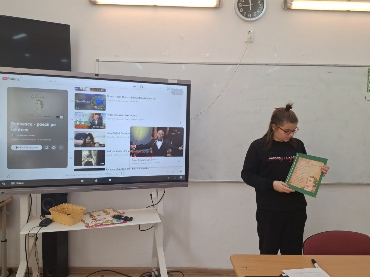 S-au derulat concursuri pe grupe, elevii urmând să reconstituie poezii primite sub formă de puzzle. Altă activitate derulată a presupus rescrierea unei poezii în diverse feluri: mesaj pe WhatsApp, scrisoare, text de blog, monolog interior, confesiune/ jurnal, păstrând tema/ temele poeziei. O elevă a făcut a frumoasă surpriză, aducând în fața clasei o creație proprie în care a folosit versuri si titluri de poezie din lirica eminesciană.